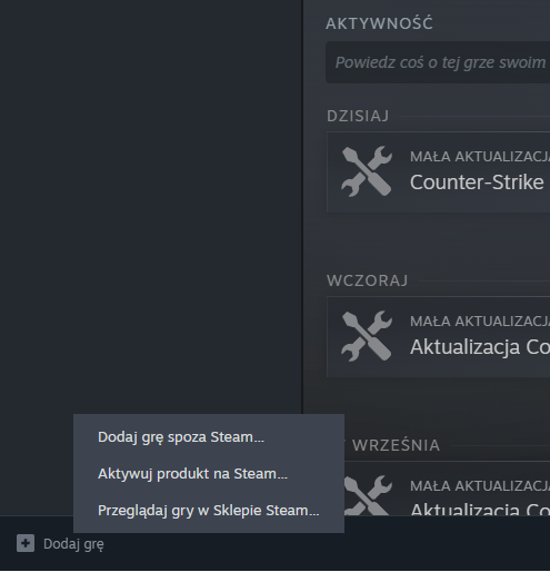 Otwórz aplikację Steam i zaloguj się na swoje konto. Przejdź do biblioteki Steam w lewym dolnym rogu kliknij przycisk dodaj grę, następnie, aktywuj produkt na Steam.